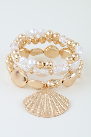 Multi Seashell Charms Beaded Bracelet