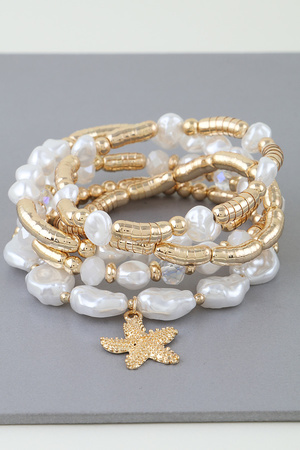 Multi Starfish Pendant Beaded Bracelet