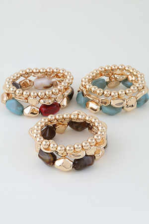 Multi Wide Stone Beaded Bracelet