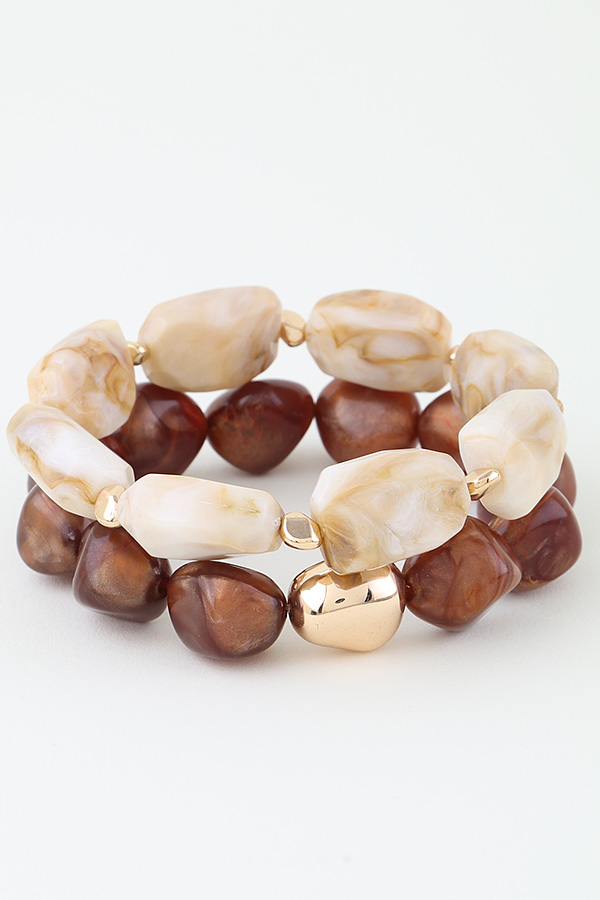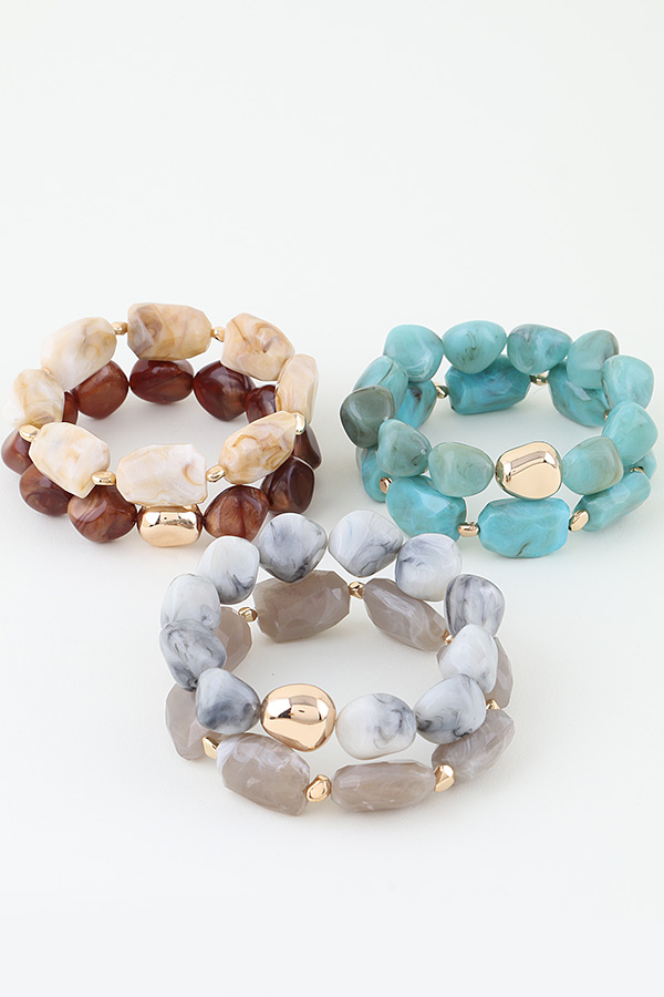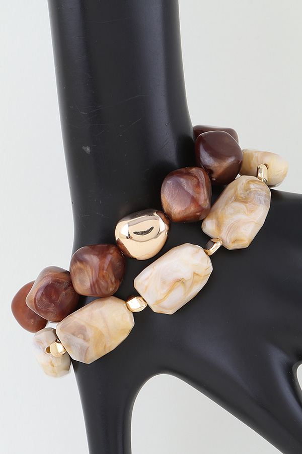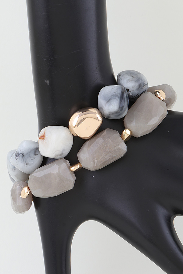 • * This is a Multi Marble Stone Beaded Bracelet from H&D Accessories. It is crafted with various marble - like stones and metal accents, creating a unique and textured look. The bracelet has a comfortable fit and can easily elevate your style. Perfect for adding a bohemian touch to your outfit when you're going for a walk in the park or meeting friends for a coffee.
