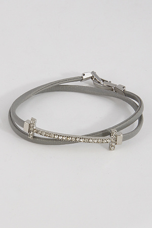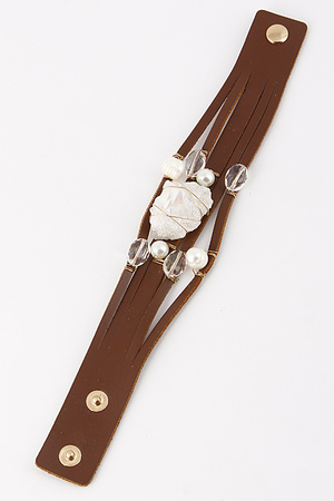 Faux Crystal with Layered Strap Snap On Bracelet 6CCA8