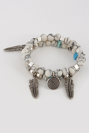 Bead Bracelet With Arrow And Leaf Charm 6EAF2