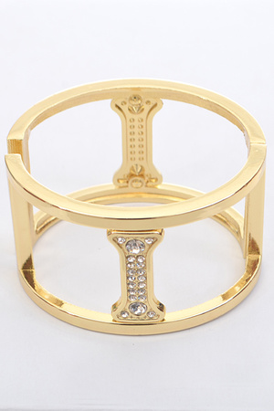 Stripe Cutout Metallic Cuff Bead Bracelet 5EAE8