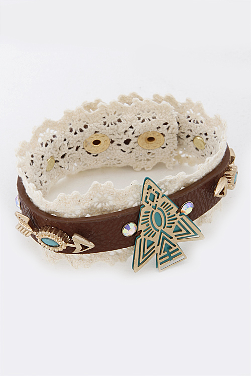- *Aztec Arrow Bracelet with Charms and Lace Detail 5JCE13