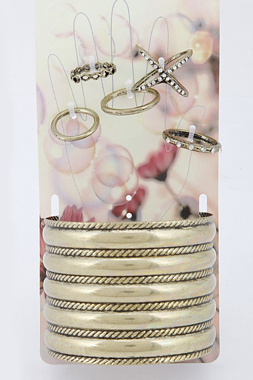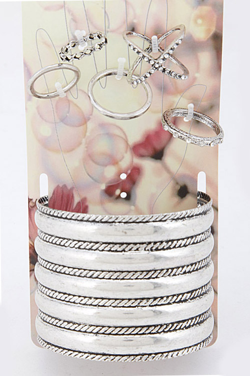 • * Braided Cuff Bracelet with Mixed Ring Set 5KAE4 * 2X2" approx.