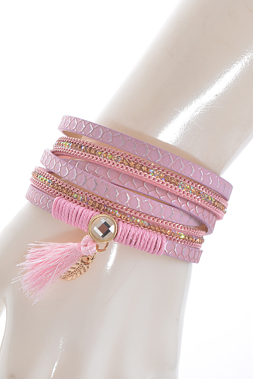 - * Layered Croc and Rhinestone Bracelet * 15.5 x 0.75" approx.