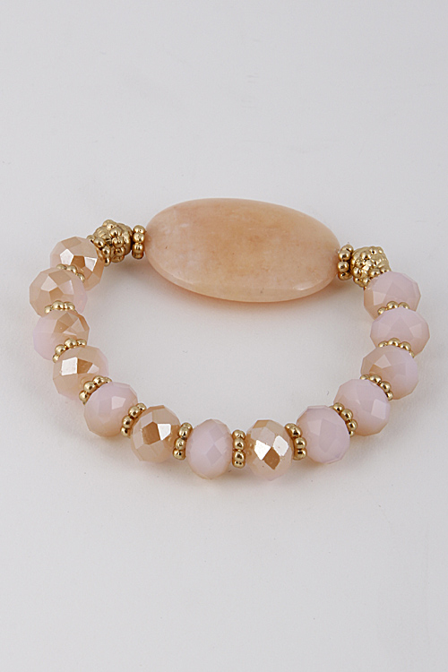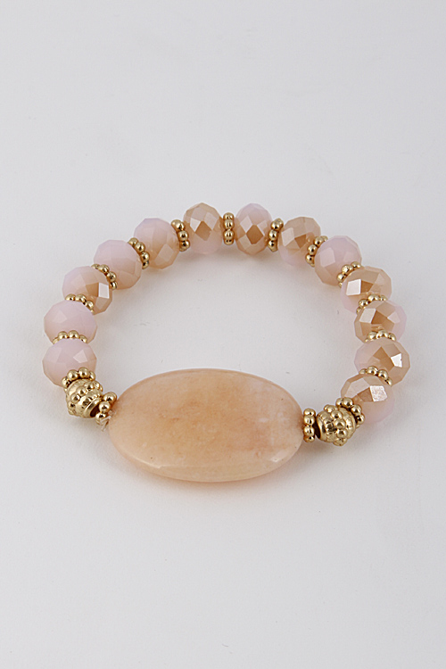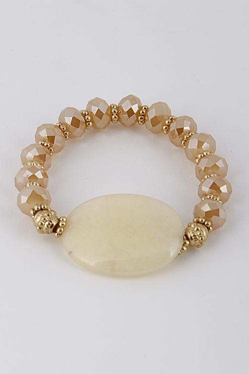 - * Antique Bead Bracelet With Stone 6CCE7 * 2.5 X 2.5" approx.