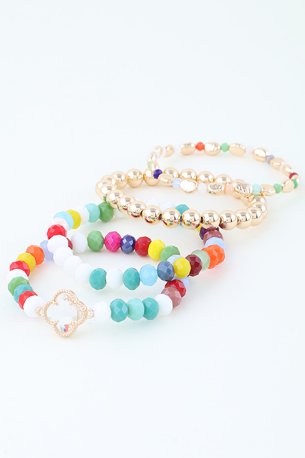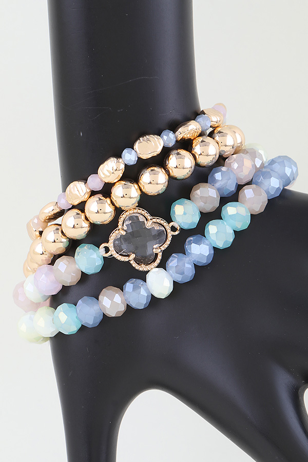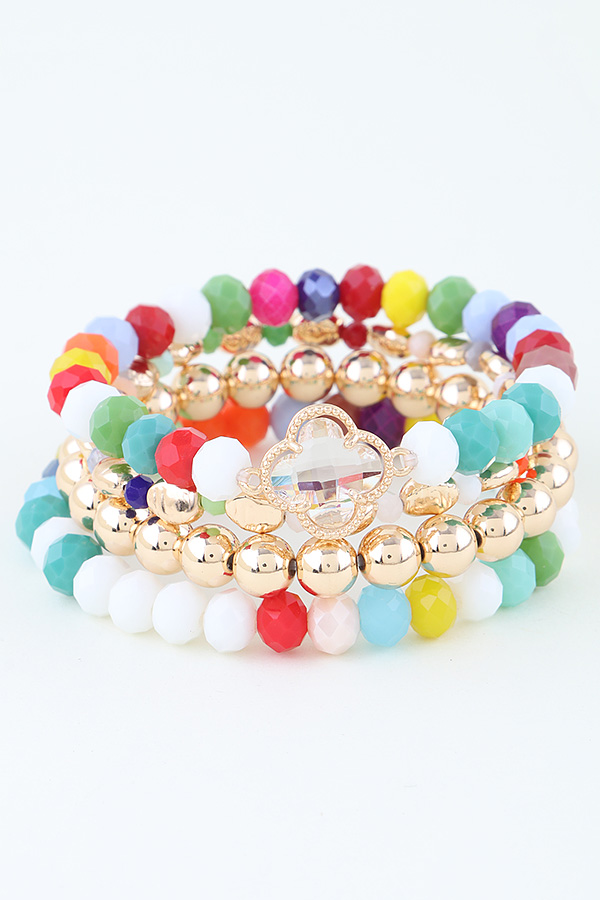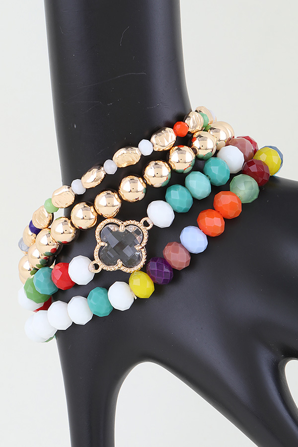 - * This Multi Clove Crystal Beaded Bracelet from H&D Accessories is an exquisitely crafted accessory. It consists of multiple strands of beads, featuring a prominent clover - shaped crystal at its center, surrounded by smaller beads, creating a visually appealing and elegant design.