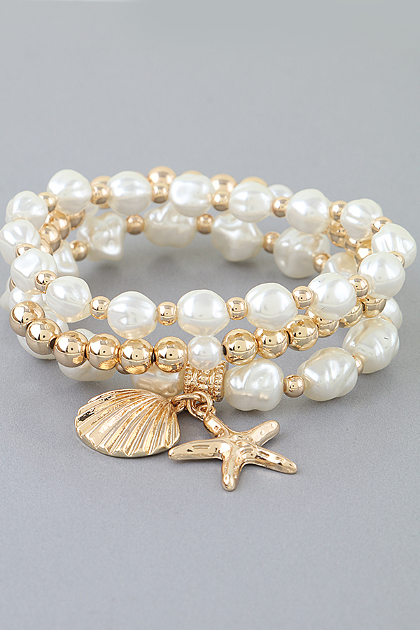 - * Starfish & Shell Charm Beaded Bracelet