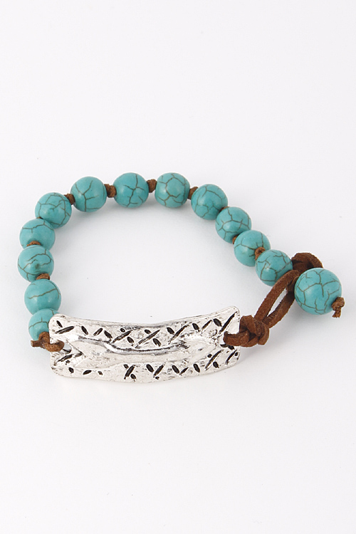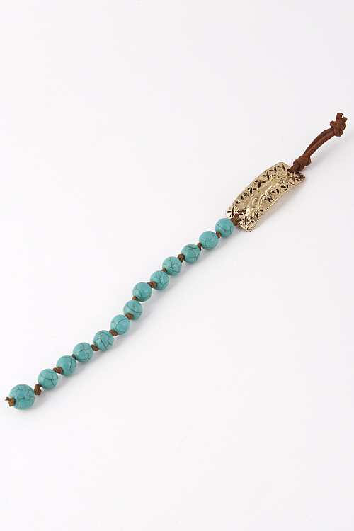 • * Arrow Carved ID Plate Bead Bracelet 5ECA10 * 2.25 x 2.25 x .3" approx.