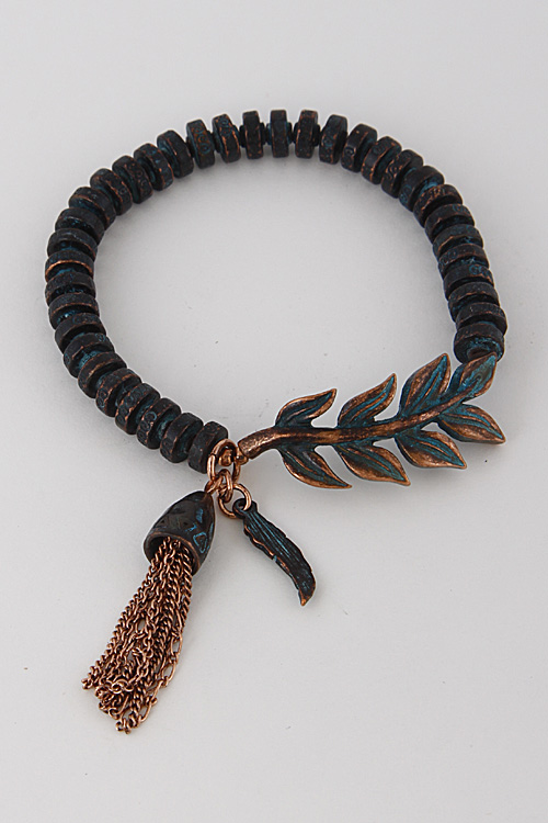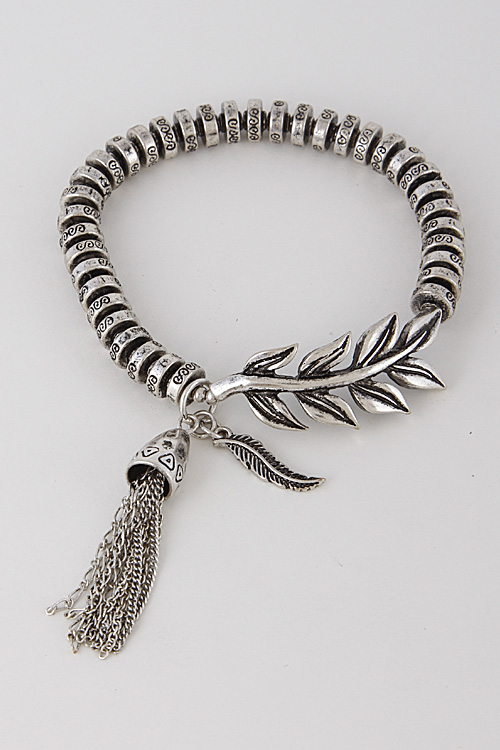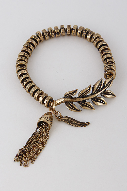 - * Simple Patterned Leaf Bracelet With Tassel 6GBI9 * 2.2 x 2.2" approx.