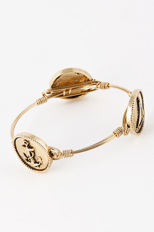 • * Different Sea Mark Medallion Bangle Bracelet 5CCA1 * 2.8 x .9" approx.