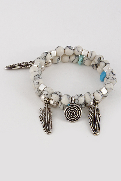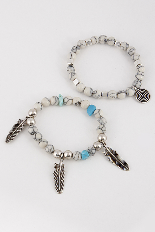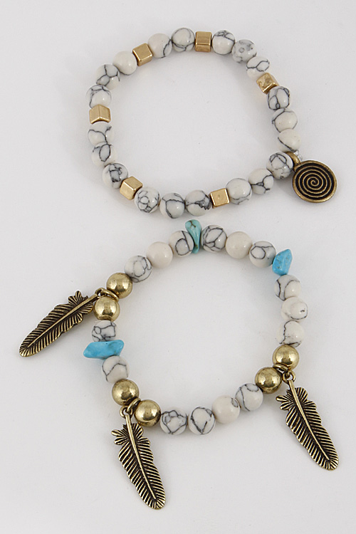• * Two Beaded Bracelet With Swirl And Leafs 6CCA10 * 2.5 x 2.5" approx.
