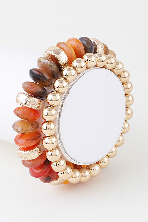 - * Introducing the Multi Marble Beaded Bracelet by H&D Accessories - a stunning piece featuring a mix of golden beads and multi-colored marble. Elevate your style with this unique and eye-catching accessory that is sure to turn heads wherever you go.