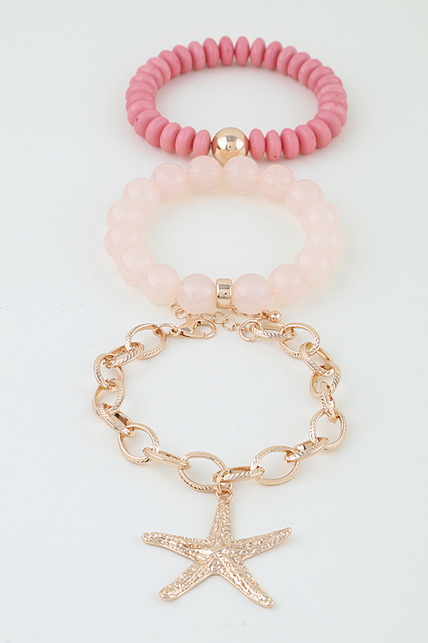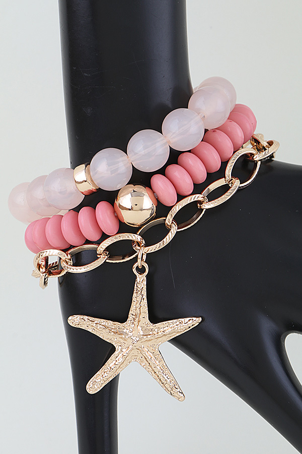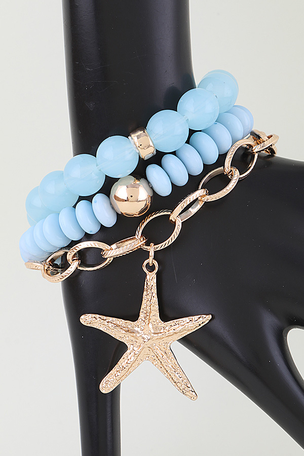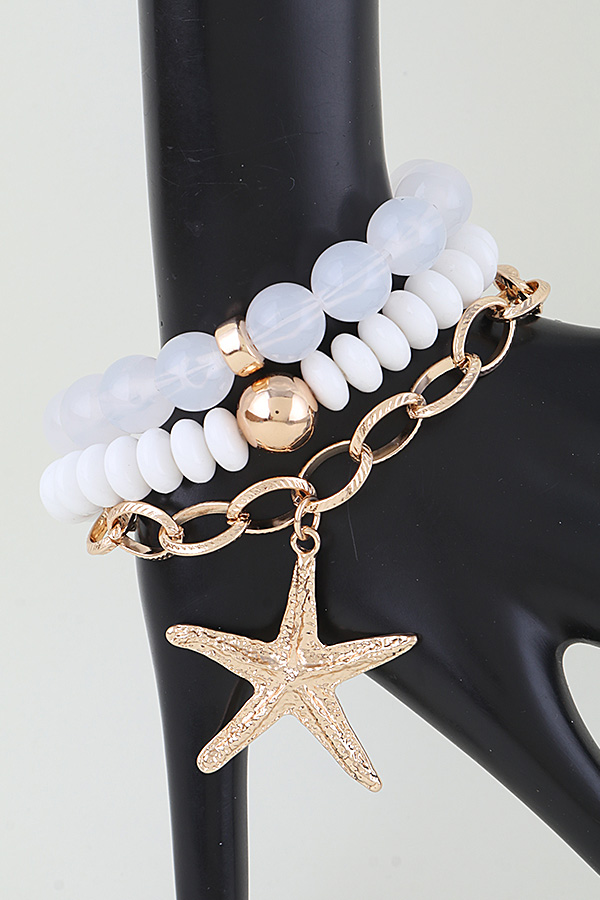 - * Hammered Starfish Chain Beaded Bracelets from H&D Accessories feature a layered design with smooth beaded strands and a textured chain, anchored by a detailed hammered starfish charm for coastal-inspired charm. Crafted with lightweight, durable materials, these bracelets offer a comfortable fit for all-day wear, whether you’re strolling along the shore or enjoying a beachside brunch. The mix of beaded and chain elements adds visual interest, making them a versatile accessory for casual outings, vacation adventures, or summer gatherings. Whether you’re dressing for a coastal getaway or adding a playful touch to your everyday look, these bracelets deliver a breezy, stylish aesthetic that captures the spirit of the sea.