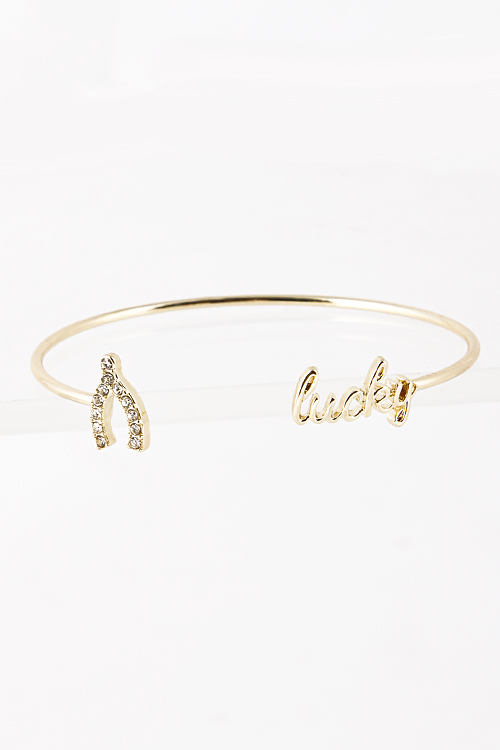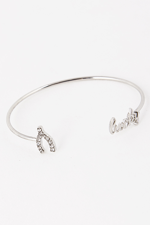 • * Rhinestone Studded Wishbone Lucky Cuff Bracelet 5DAC2 * 2.25 x .5" approx.