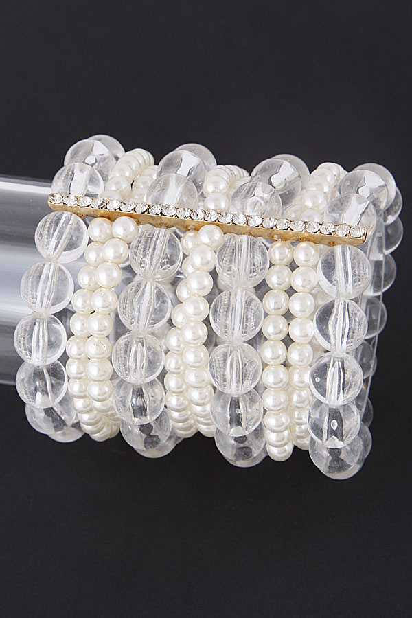 - * Faux Pearl Mixed Up Stretch Bracelet 8AAF6