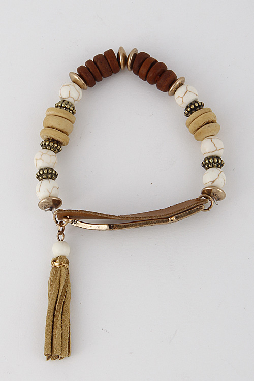 - * Thin Beaded Bracelet With Bar And Tassel 6DCB6 * 2.2 X 2" approx