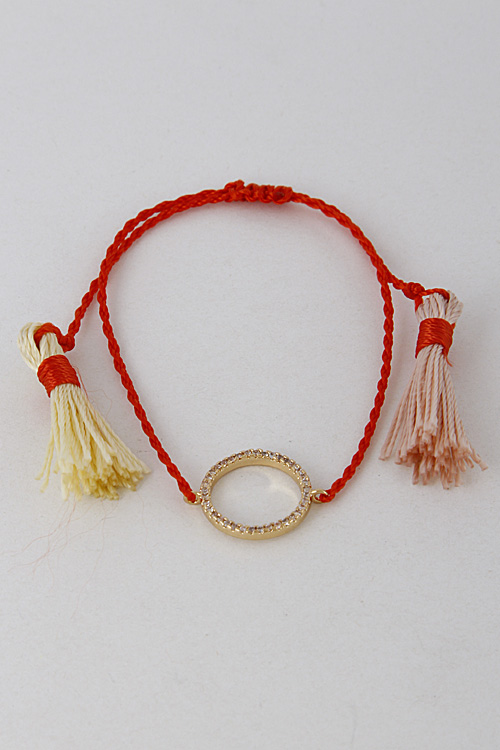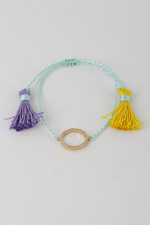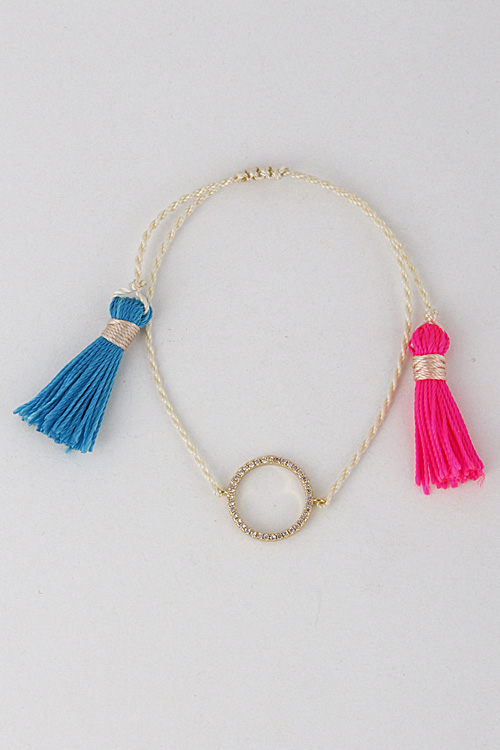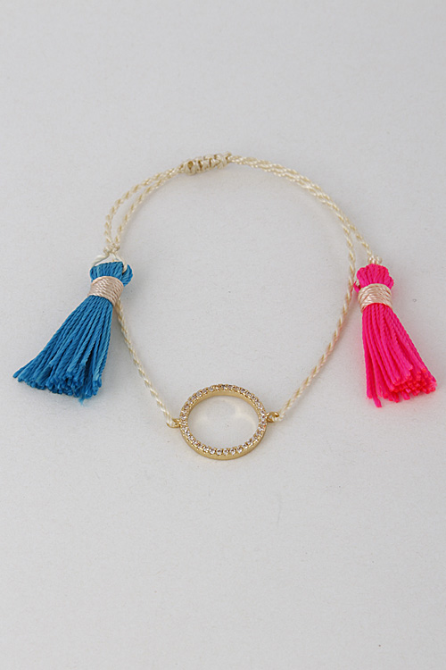 - * Cute Circle Emblem and Tassel Bracelet 7DCA10 * 2.5 x 2.5" approx. * Cubic Zirconia