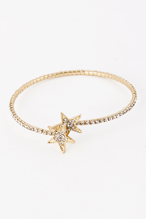 • * Let It Shine Double Star Rhinestone Studded Bracelet 5CCG1 * 2.4 x .8" approx.