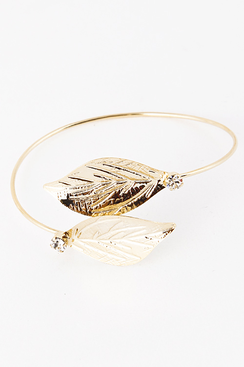 • * Rhinestone Jewel Leaf End Cuff Bracelet 5DAC4 * 2.1 x 2" approx.