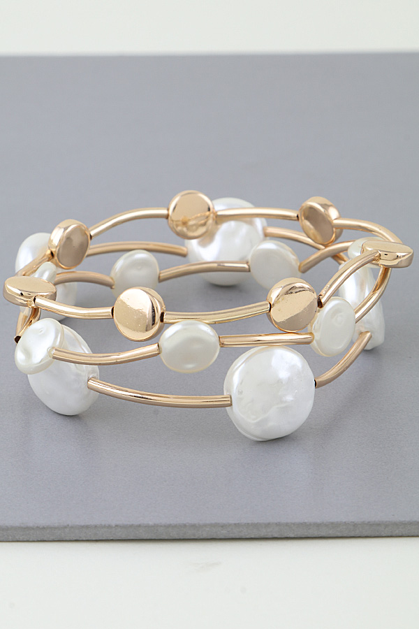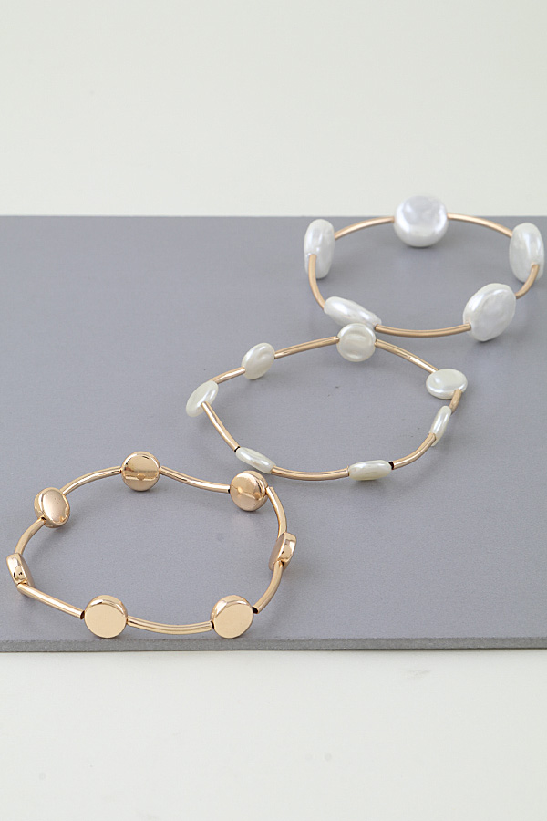 - * This Modern Flat Beaded Bracelet from H&D Accessories features a layered, open design that combines smooth, flattened beads with polished, spherical metallic accents, set along sleek, curved bands for a contemporary silhouette. Its refined yet distinctive style makes it a versatile addition to various looks: wear it to elevate a crisp button-down shirt for a professional meeting, or pair it with a lightweight dress to add a polished touch to a evening dinner. The blend of its modern structure and soft beaded details allows it to transition seamlessly between workwear and elegant casual ensembles, bringing a sophisticated, on-trend flair to any occasion.