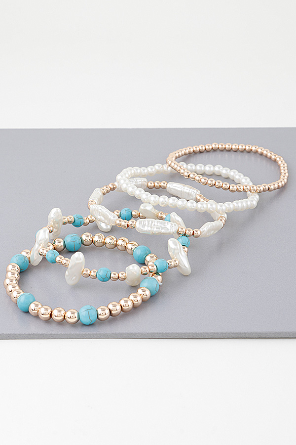• * Discover "Multi Stone n Pearl Beaded Bracelet" from H&D Accessories – a captivating blend of color and charm. This exquisite stack showcases the enchanting turquoise beads, harmoniously paired with the luxurious multi-stone and pearl details. Perfect for any occasion, these bracelets will not only enhance your outfit but also reflect your unique personality and flair.