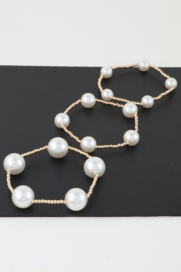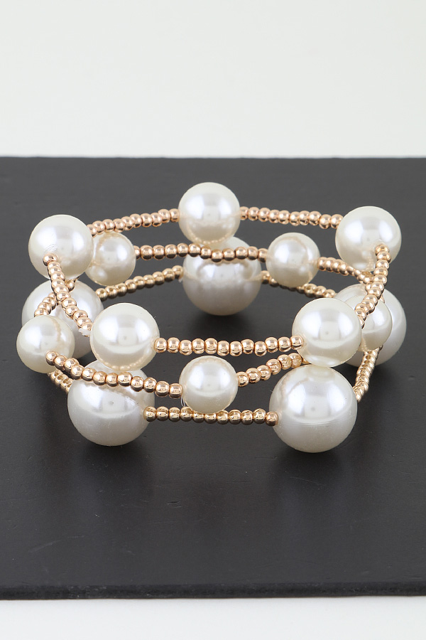• * This is a Triple Pearl Beaded Bracelet from H&D Accessories. It features three rows of beaded chains adorned with pearls of varying sizes. Ideal for adding an elegant, vintage - inspired touch to formal events, bridal looks, or to elevate everyday office attire.