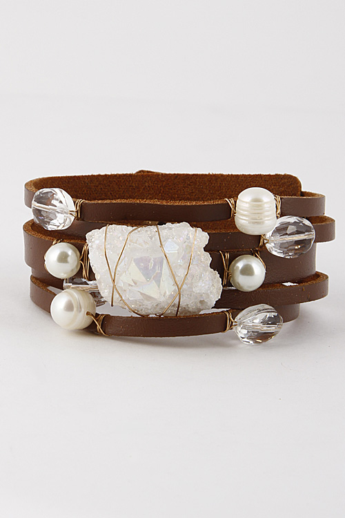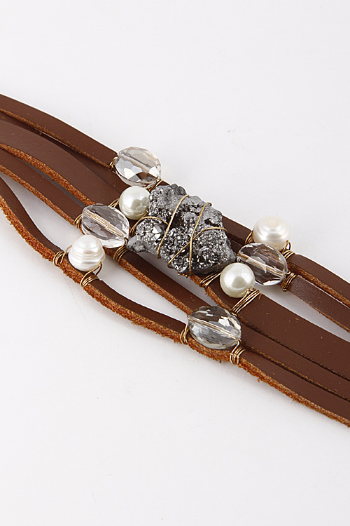 - * Four Layered Bracelet With Beads And Stones 6CBH1 * 1 X 9" approx.