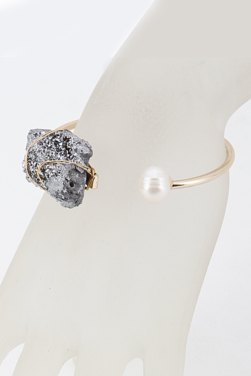 - * Stone Open Pearl Cuff Bracelet 5JBA11 * 2.8X1" approx.