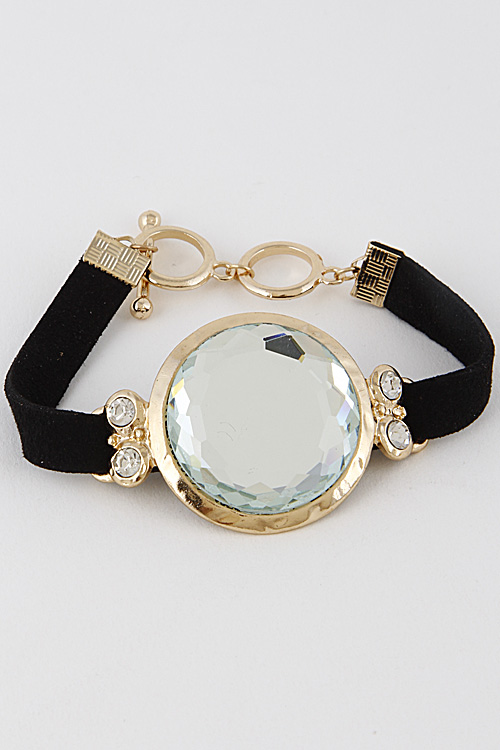 • * Antique Style Bracelet With Circle Stone Emblem 7ABE3 * 2.2 x 2.2" approx.