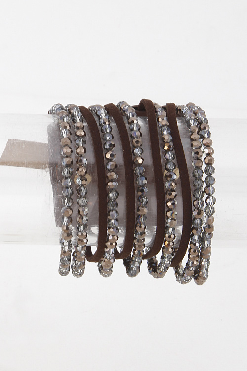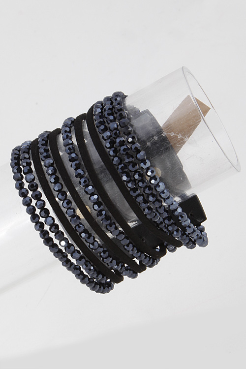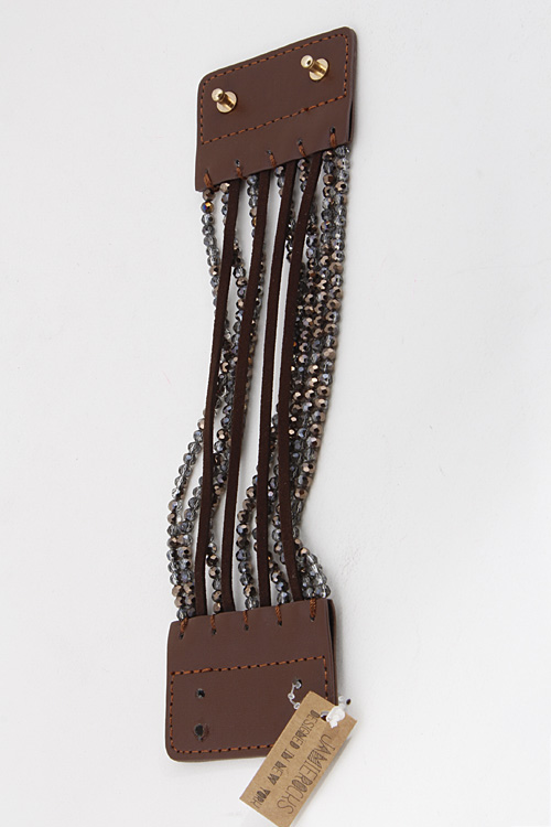 - * Leather Layered Bead Bracelet 5JBA2 * 2.2X8.5" approx.