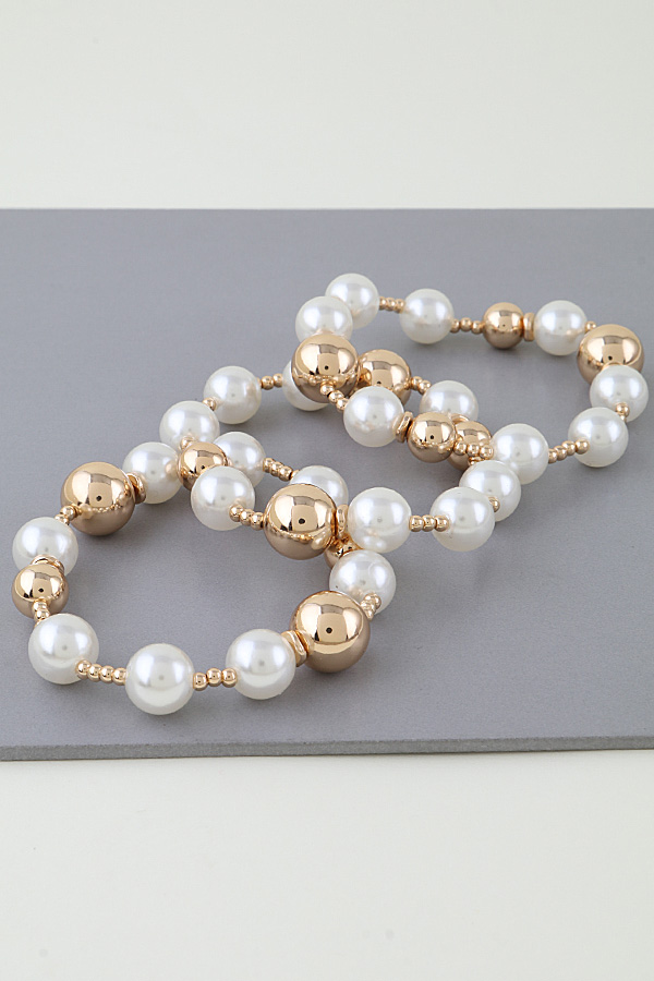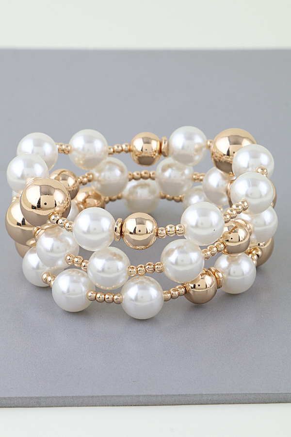 - * This Multi Beaded Pearl Stone Bracelet from H&D Accessories is a layered piece that combines lustrous, rounded beads with polished, metallic spherical accents, connected by delicate small beads for a textured, dimensional look. Its full, decorative design makes it a perfect accessory to elevate a formal outfit—wear it with a tailored dress for a wedding or evening gala to add a touch of elegance, or pair it with a silky blouse for a refined vibe at a dinner party. The blend of soft, classic beads and sleek metallic elements allows it to bring a sophisticated flair to special occasions while maintaining a graceful, approachable charm.