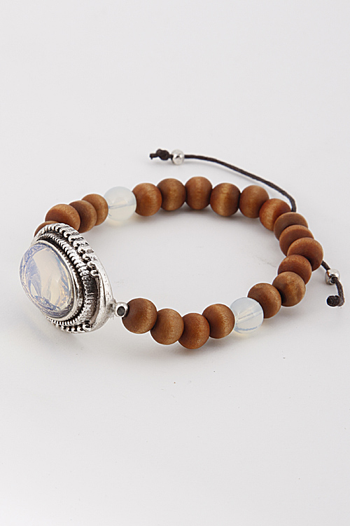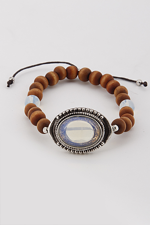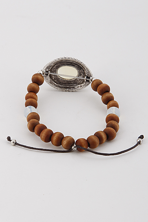 • *Beaded Bracelet With Oval Stone And Strings 6BAH4 *2.5 X 2.5" approx.