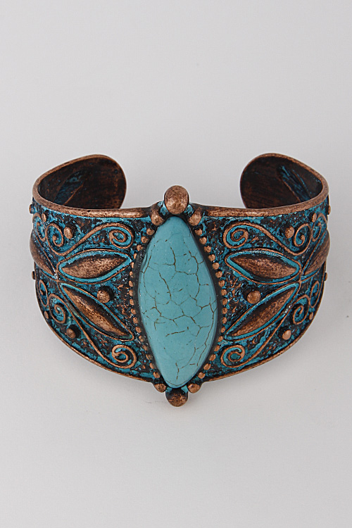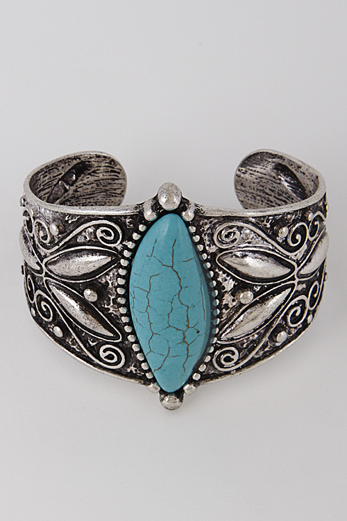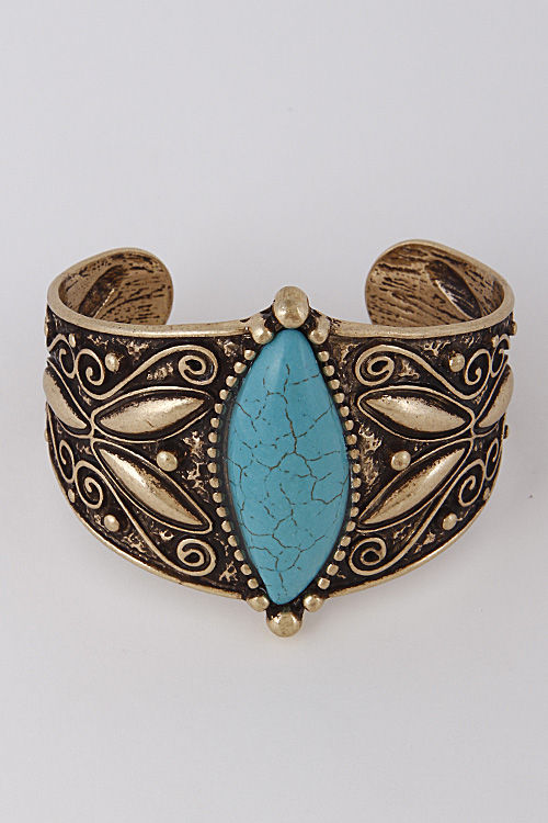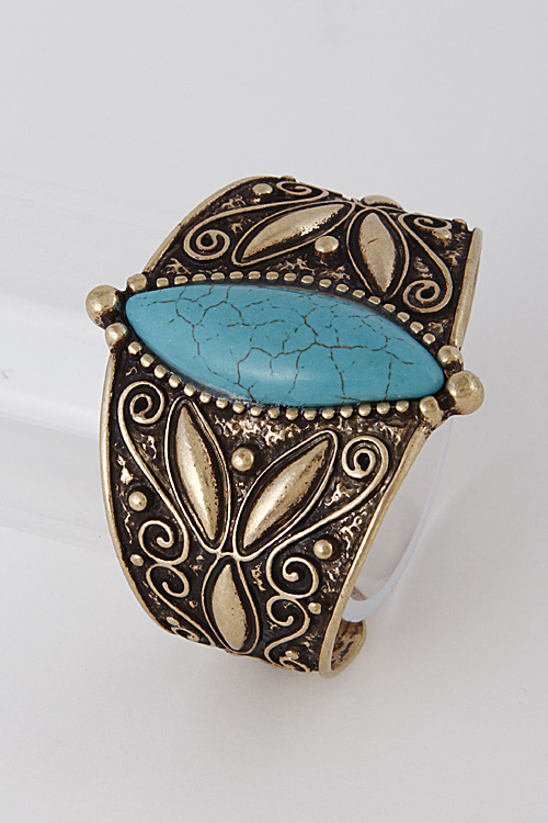 - * Antique Eye Shaped Stone Open Bracelet 6GBI8 * 2.5 x 2" approx.