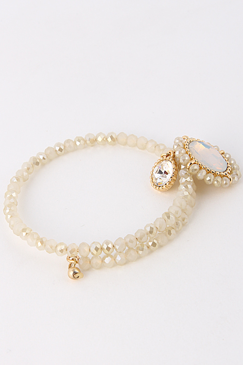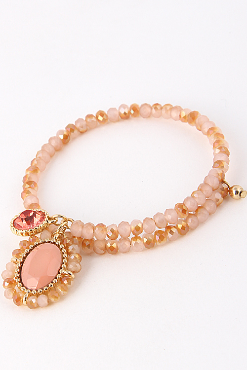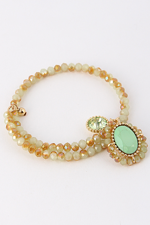 • * Beaded Wrap Around Stone Charm Bracelet 5ABE6 * 2.2 x .8" approx.