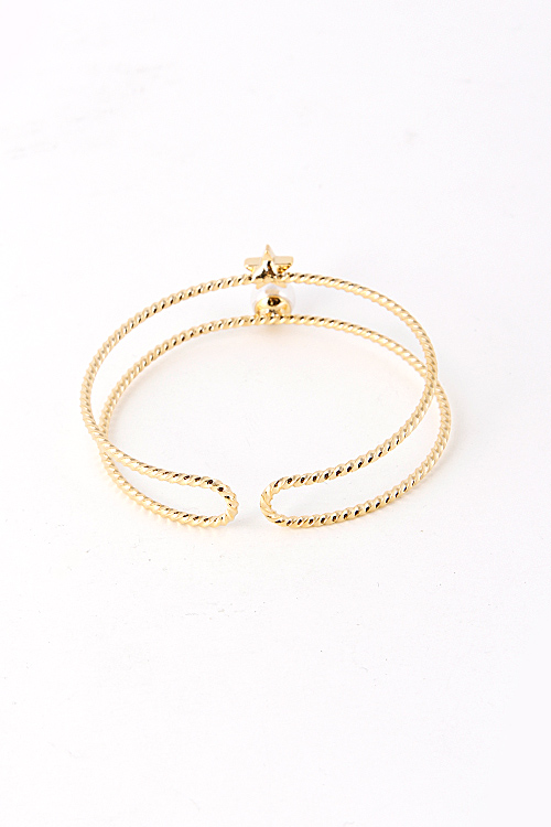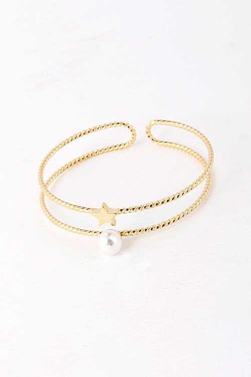 • * Star And Pearl Charm Attached Cuff Bracelet 5EAI4 * 2.25 x 2.5 x .5" approx.