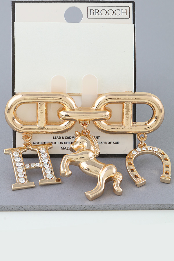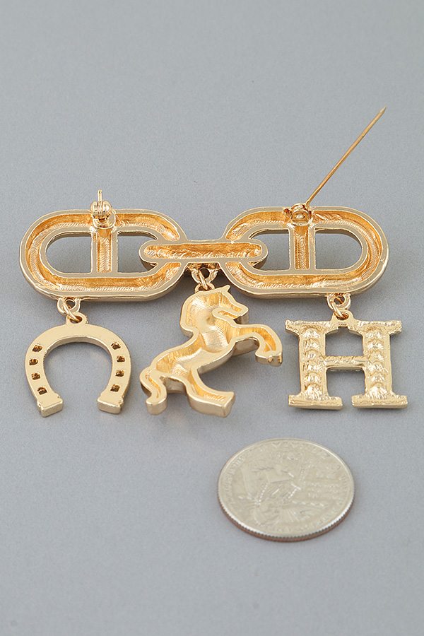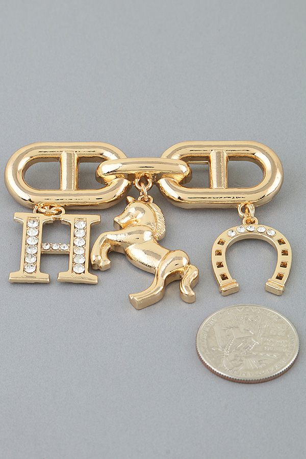 - * The Jeweled Horseshoe Mariner Chain Brooch from H&D Accessories is an elegant and stylish accessory. It features a mariner chain design with jeweled horseshoe and letter charms, adding a touch of sophistication to any outfit. This brooch is perfect for embellishing coats, dresses, or blouses, making it suitable for both formal and casual occasions.
