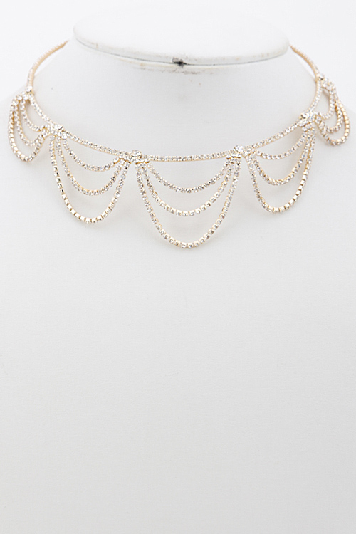 - *Layered Stone Elegant Necklace 6BAE5 *9 X 1.5" approx.