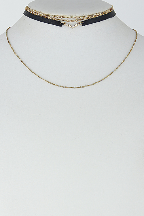 • * Multi Layer Thin Rhinestone Chevron Choker Necklace 6HAE7 * 0.2 x 12" approx.