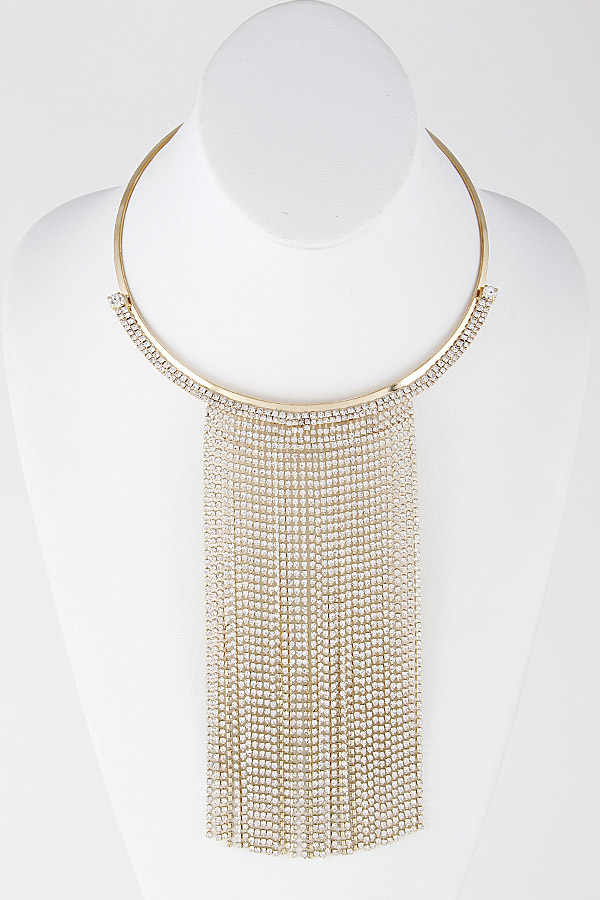 - * Elegant Rhinestone Fringed Choker Necklace 8DAD6