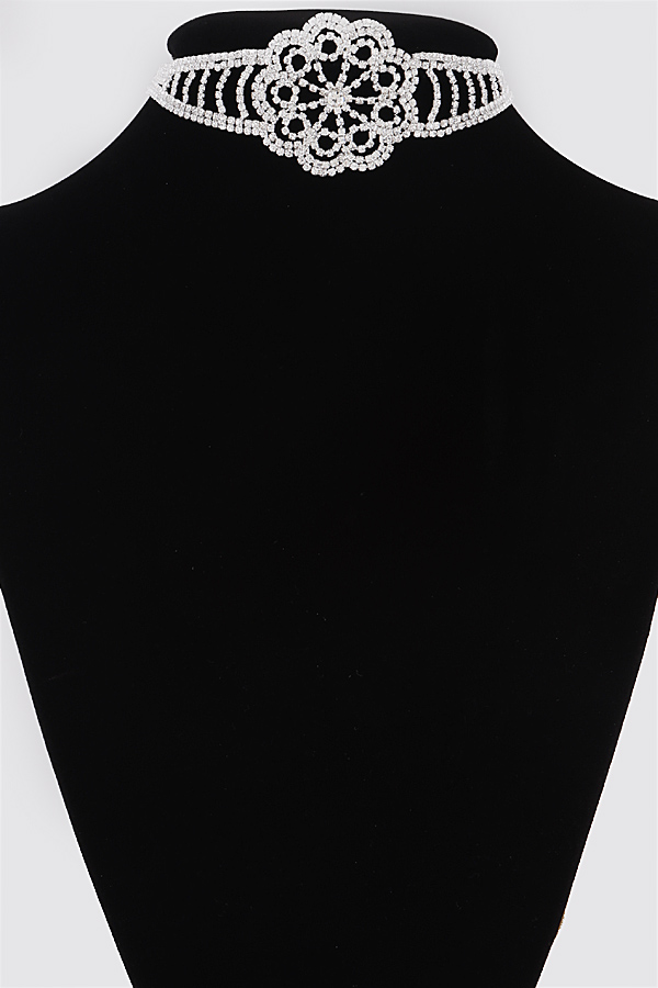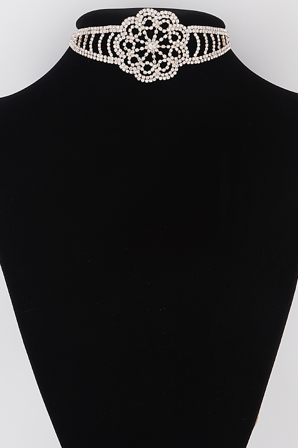 - * Jeweled Flower Choker Necklace