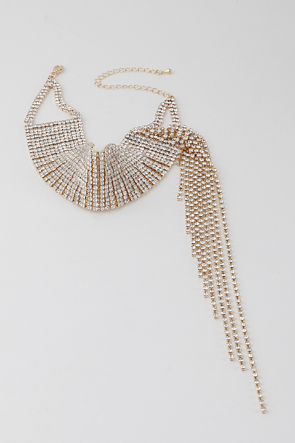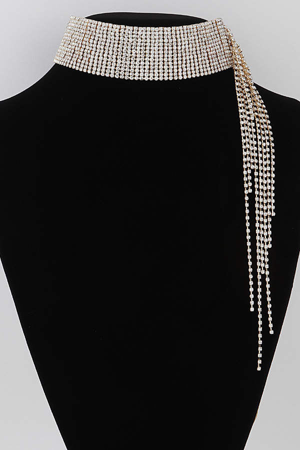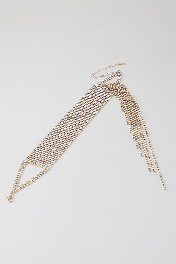 - * Rhinestone Scarf Drop Choker Necklace