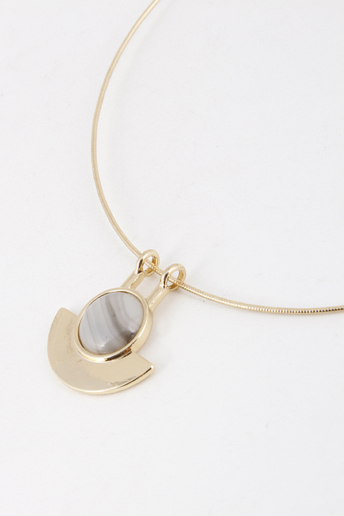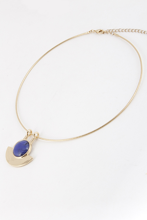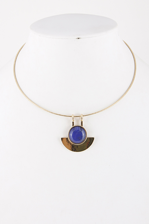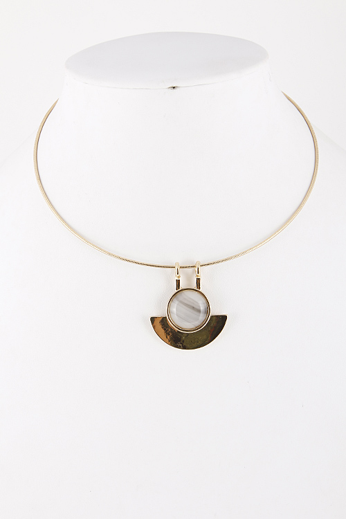- * Collar Wire Necklace with Circle and Half Moon Shaped Pendant 5ICJ2 * 7" approx.