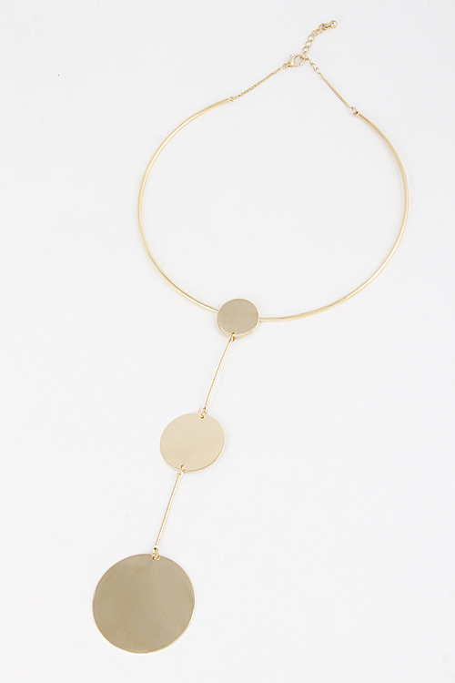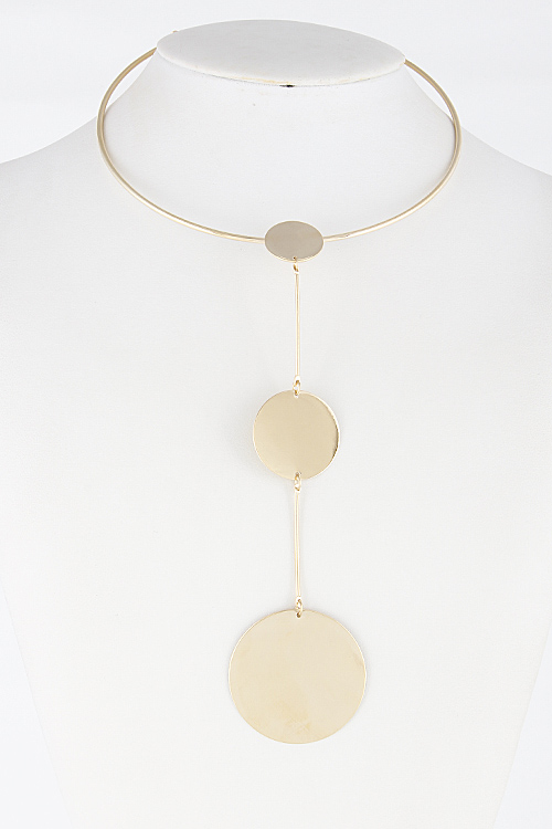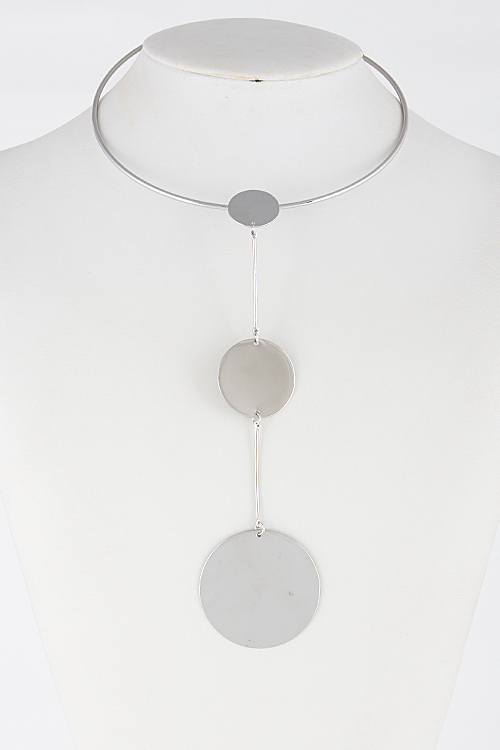 - * Long Solid Necklace With Three Circles 6EBA6 * 12" approx