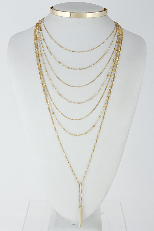 • * Thick Multi Layer Long Choker Necklace 6HBG4 * 9" approx. * 16" approx.