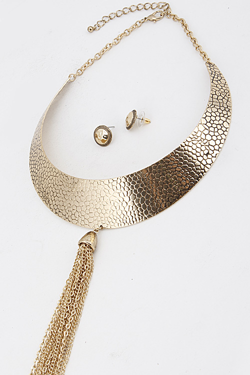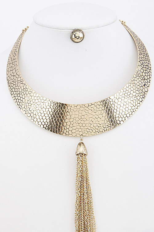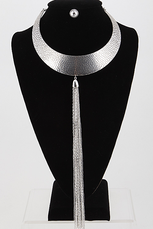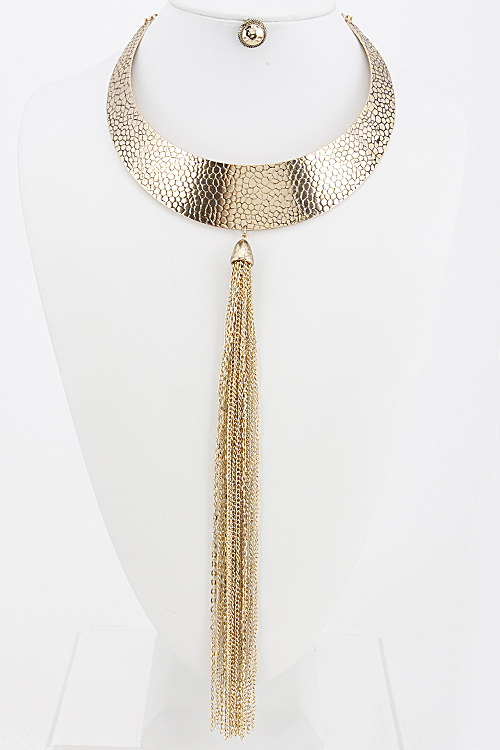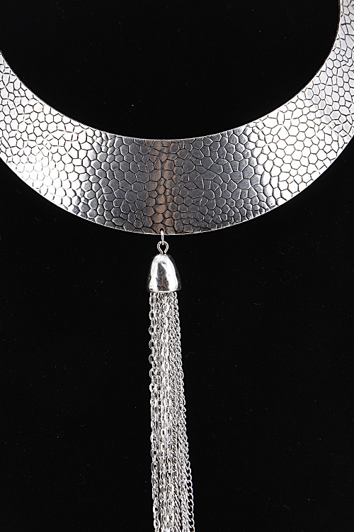 • * Textured Collar Necklace with Long Tassel Chain Detail 5JCB9 * 6", 15" approx.