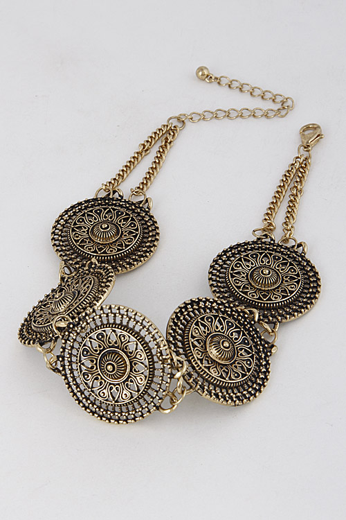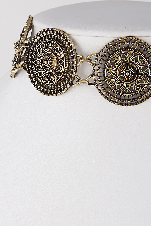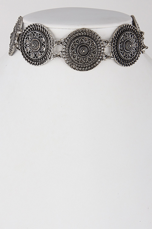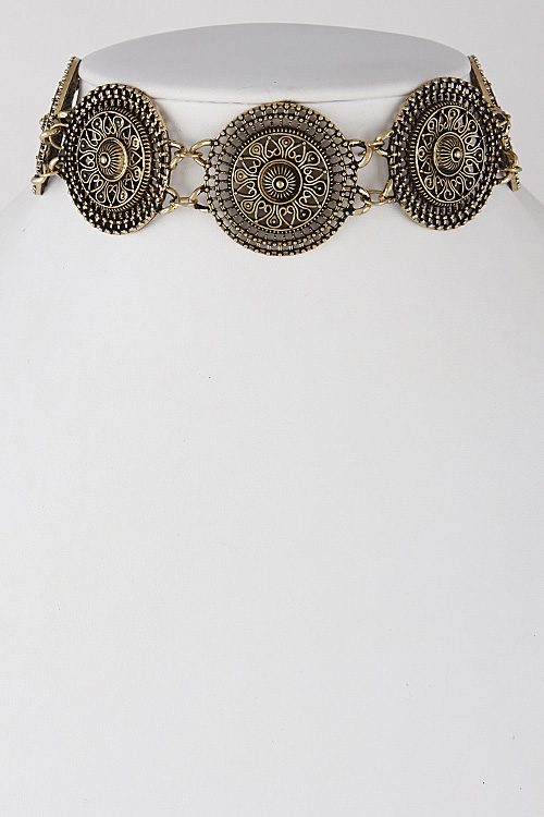 • * Antique Emblem Circle Choker Necklace 6IBA4 * 1.5 x 12" approx.