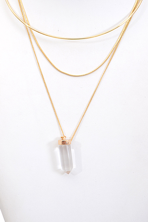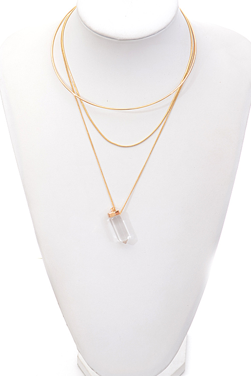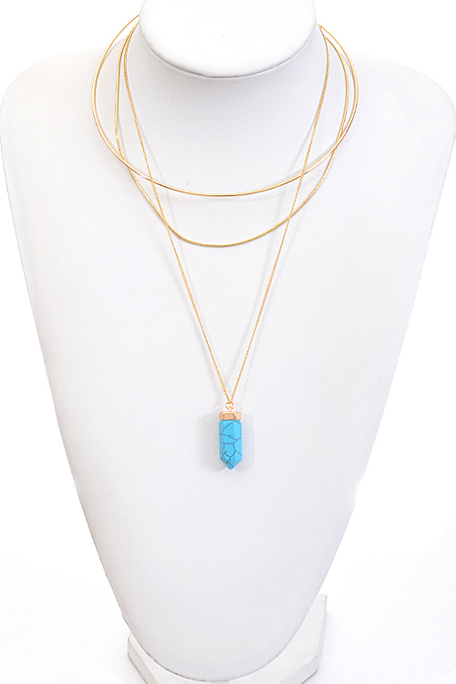- * Double Wired Stone Pendant Layer Necklace * 16" approx.