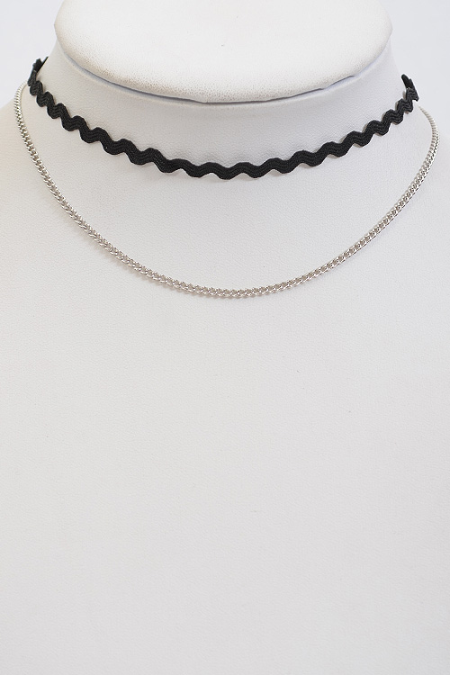 - * Squiggly Double Layered Choker Necklace 6CCB2 * 14.5" approx.